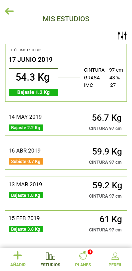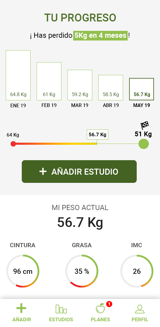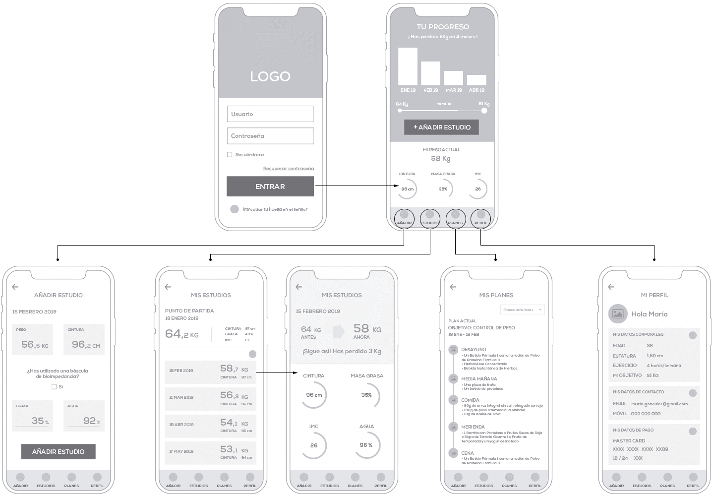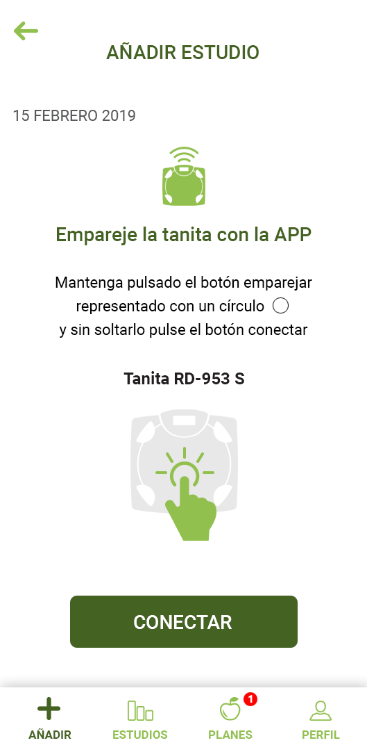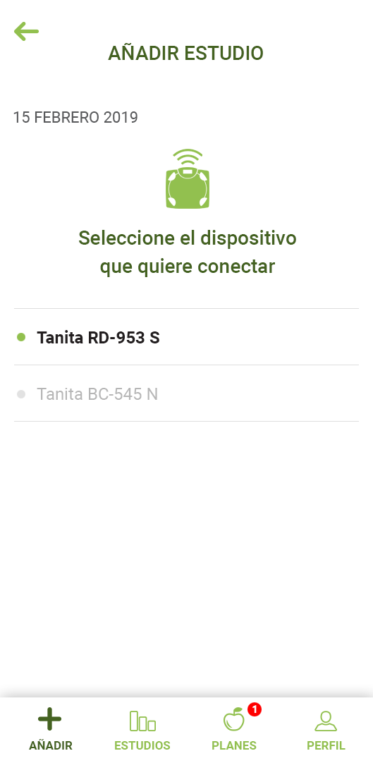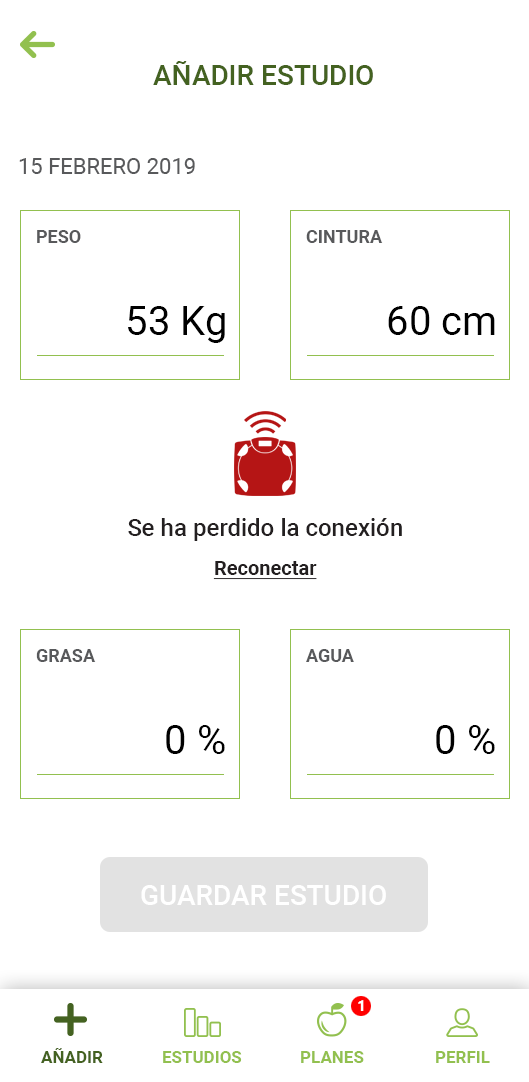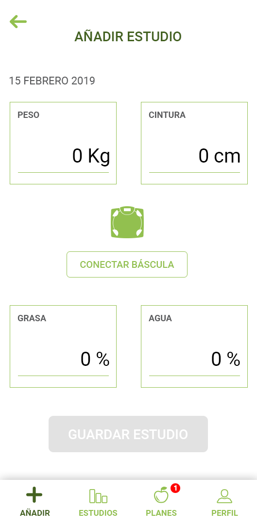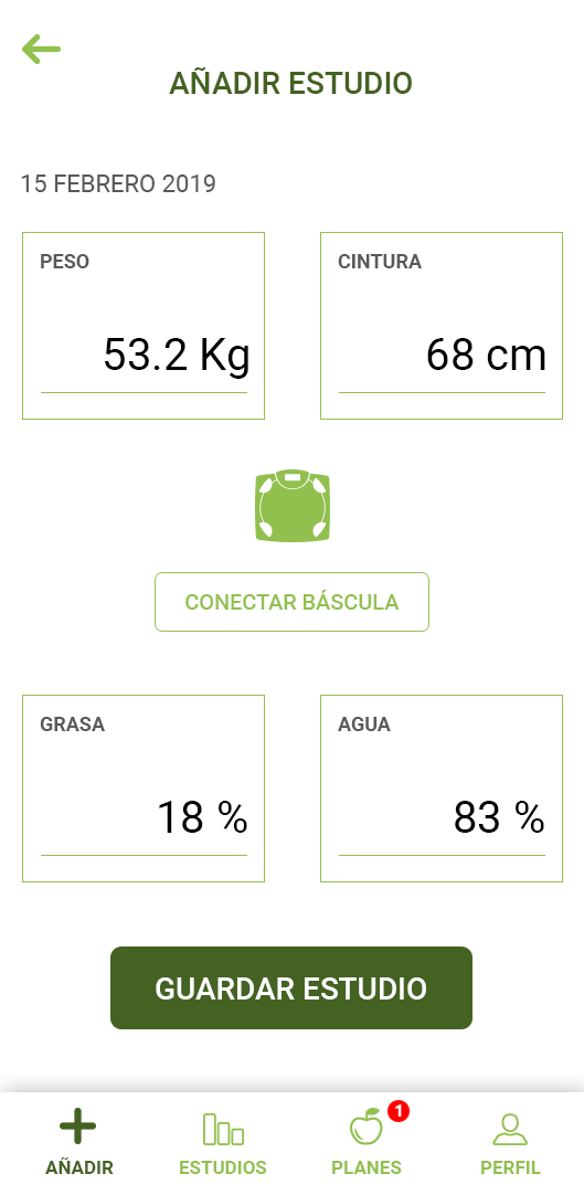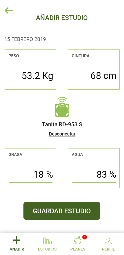 It was the main functionality and the more complex to develop. The whole business was centralized on this functionality. This functionality gives the main information so that the APP can assign to the users a pre-made diet that matched with their results. The users could introduce the data by themselves or link with the system a Tanita scale.