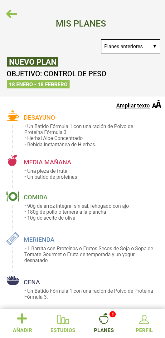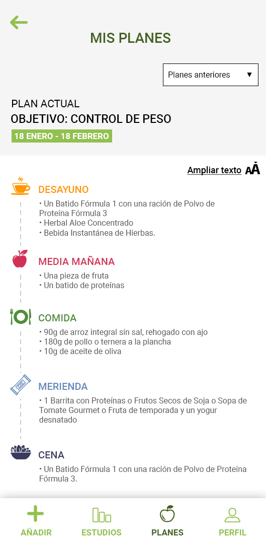 When the users introduce their data throughout the App or the Tanita, the system automatically assigned a pre-made diet based on their results. To can achieve their goals, users had to do the nutritional studies each certain time, and with the new data, the system assigned a new food plan.