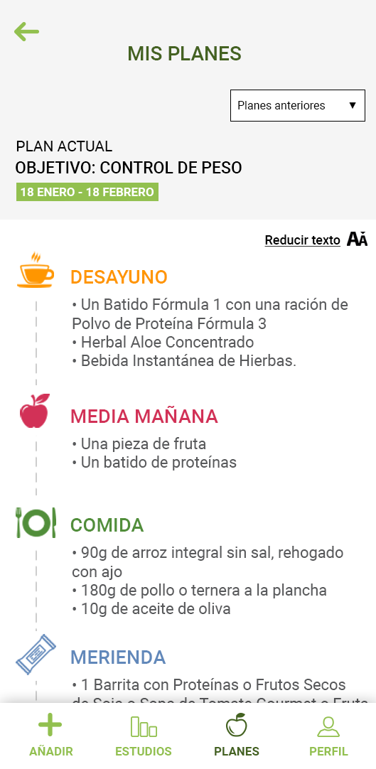 Considering that the native APP was not going to replace the website App, I assumed that most of the functionalities could be dismissed on the new App and, we could center it just on the main functionalities where the business is centered, the nutrition studies and the food plans. With this approach, the company could save money and time developing the new App, and make it simple and usable for the users. A requirement was the app was only accessible throughout a Herbalife's distributor who has previous access to the system.