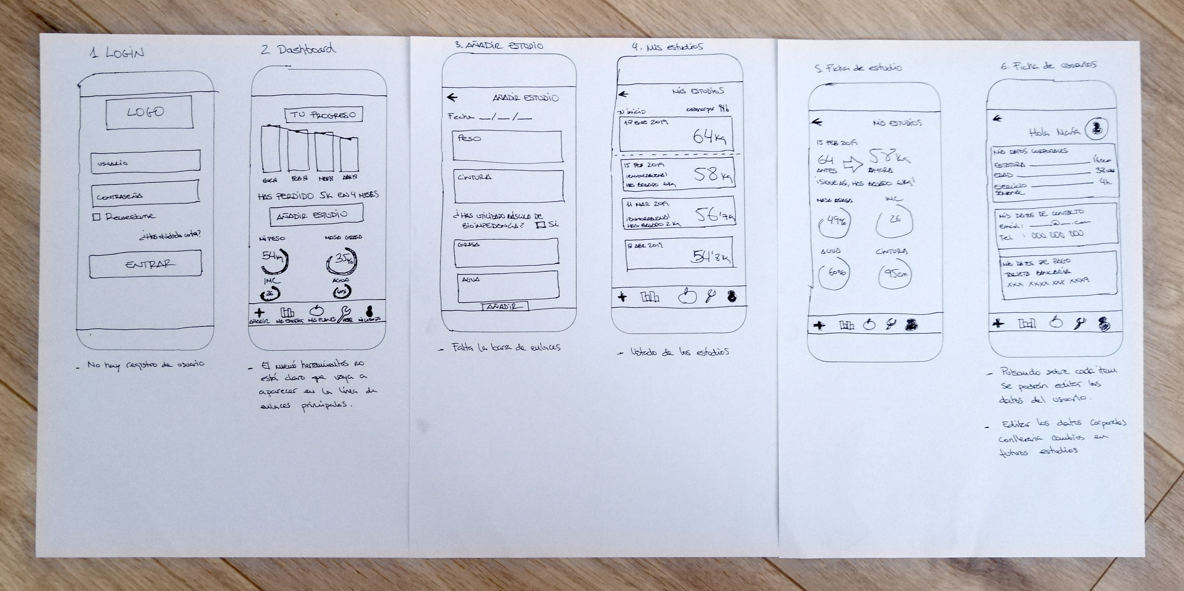 I designed some low-quality mockups to share with the participants of the workshop and have the base to discuss the user experience of the new app. I sketched the main functionalities being sure of how the user experience should be. I included everything necessary for the APP to fulfil every requirement of the customers which would speed up the interaction with the system.