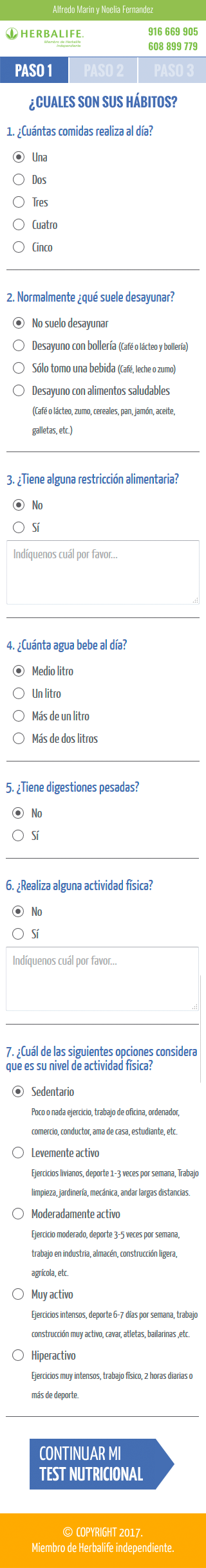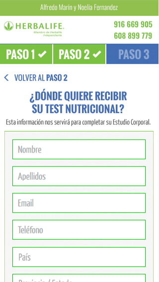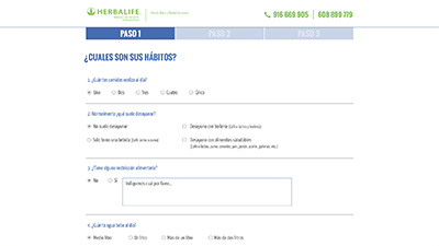 The process to fill the nutritional study was very long to be a lead generation tool. It was split into 4 different steps, the first one with 8 questions, and on the following steps were 2 different forms.