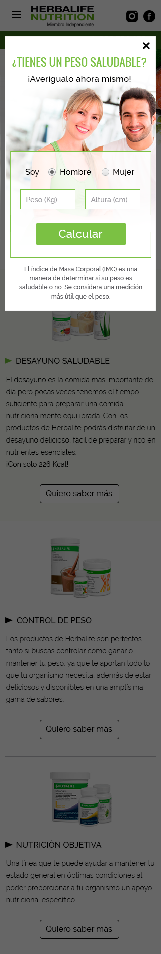 In order to increase the conversion rate, I rescued from the old website a small functionality so that users can know their BMI. The functionality consisted just in adding the weight and the height, and select if you are a man or woman.