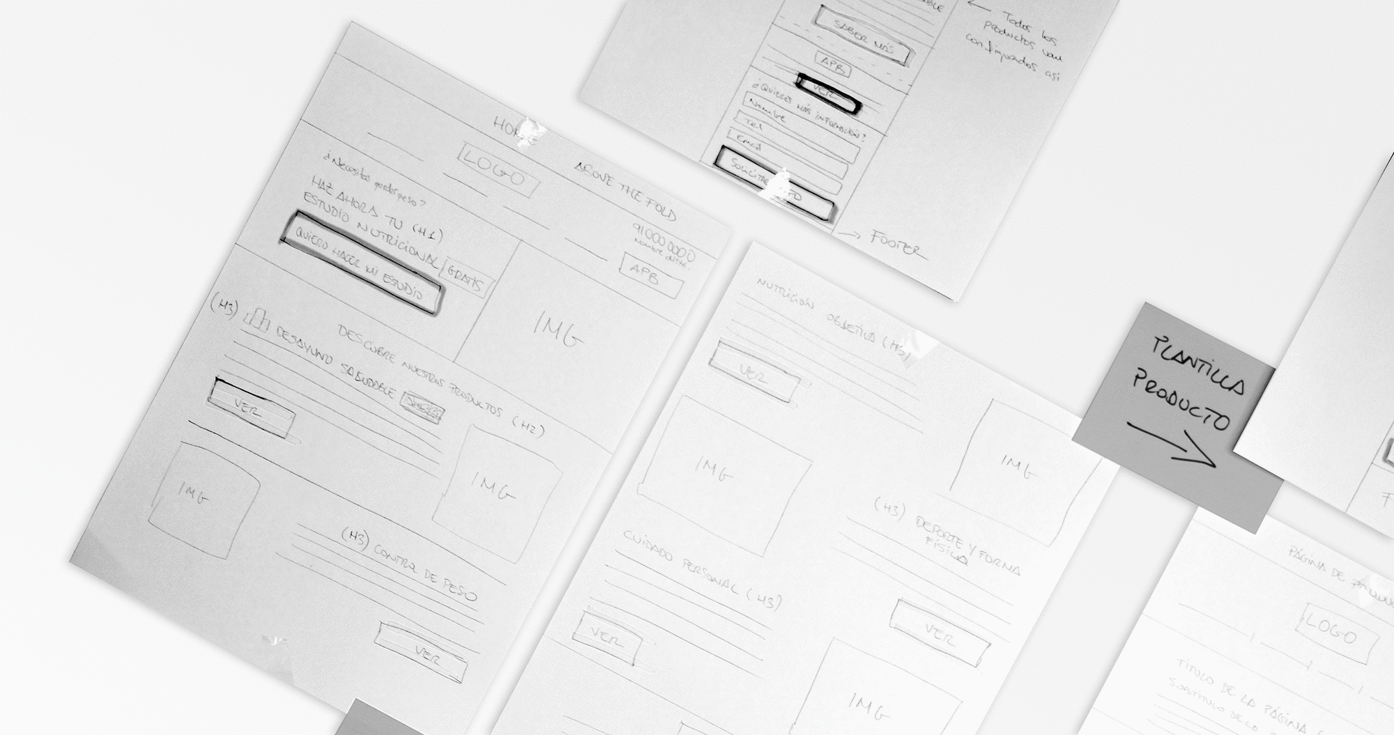 I drew some wireframes to have a first approach about how will be the new home page of the website and the nutrition study in a single step, and I showed it to the stakeholders so that they were able to understand where we should reduce the information and how. They also had to give me the necessary questions to can keep the quality of the results on the nutrition study.