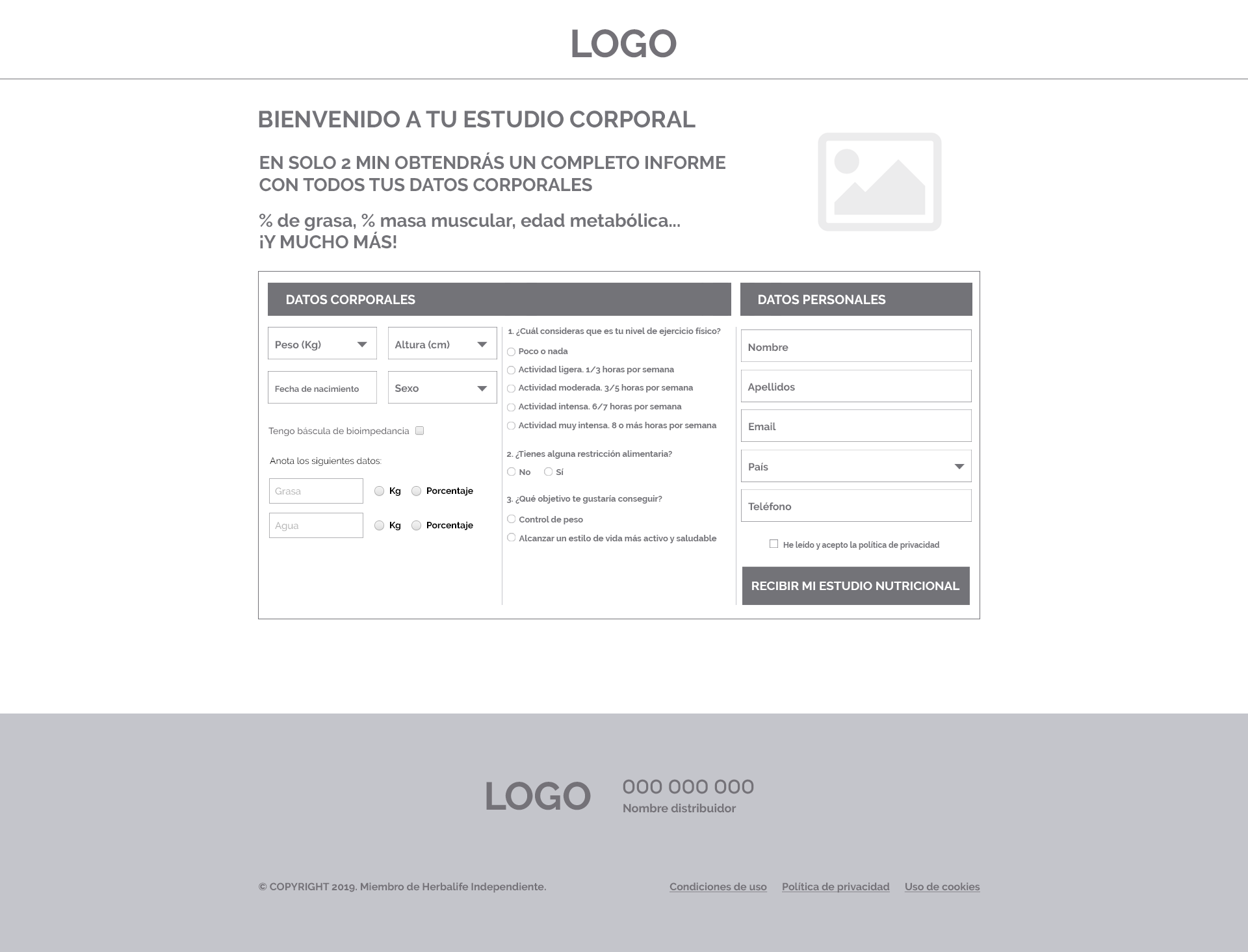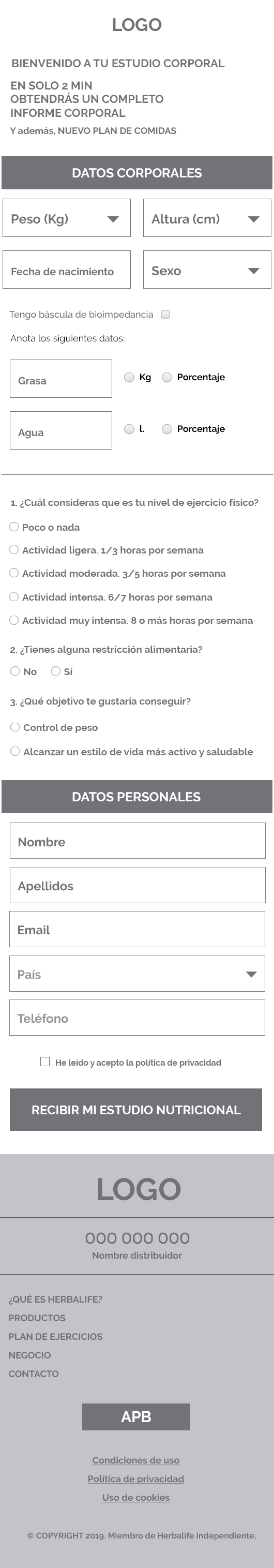 Solving the 2 main issues of the current website I could improve significantly the conversion rate. On one hand, I would have to solve the usability problems on the home page above the fold, removing all the not-mandatory CTAs and putting the focus to make simple the action to start the nutritional study. On the other hand, I had to find a way to reduce the amount of data requested to the users to complete the nutritional study. I also would have to visually compress it, so that the time to fill the form wouldn't exceed 2 min.